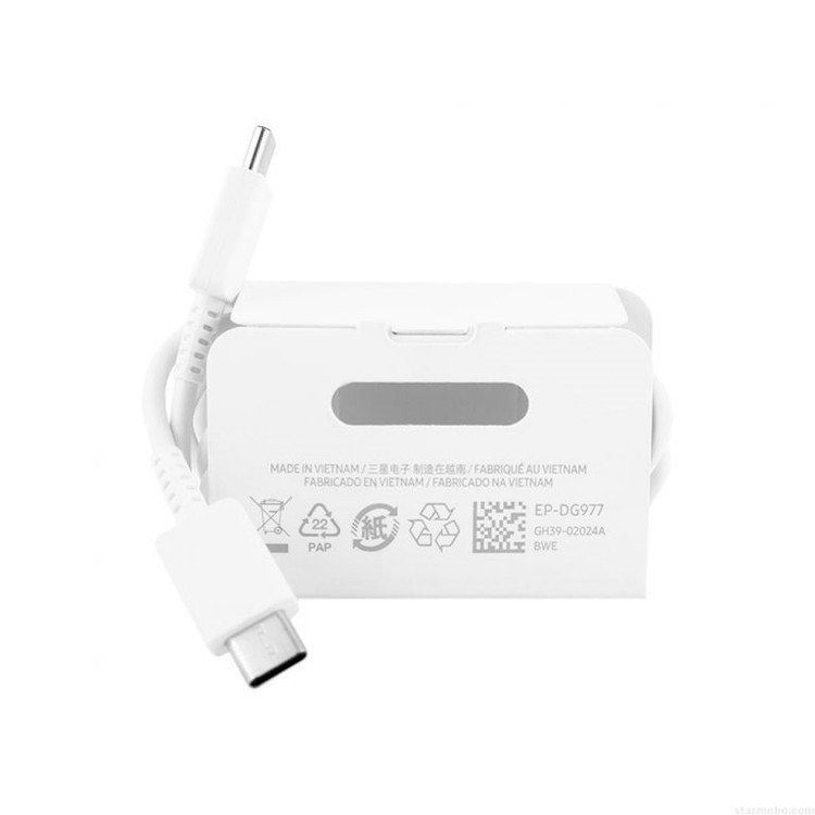 کابل شارژ دو سر Type-C سامسونگ EP-DG977 یک محصول رسمی از کمپانی سامسونگ است که از مواد با کیفیت بالا و طبق سخت ترین استانداردها ساخته شده است. این کابل نمونه ی ایده آلی به عنوان جایگزین برای کابل شارژ نوع C است. این کابل با شارژر اصلی سامسونگ برای دستگاه های پورت Type-C نیز سازگار است.