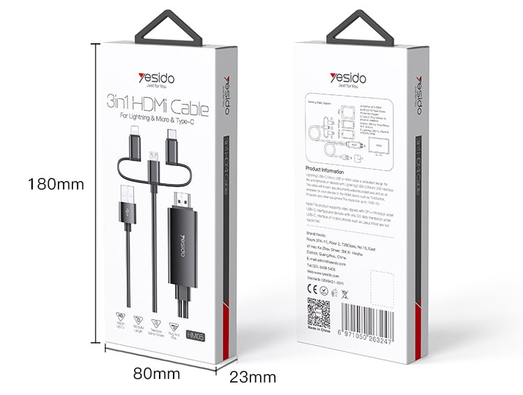 Three-ended Cable Type-C , Lightning And Micro To HDMI