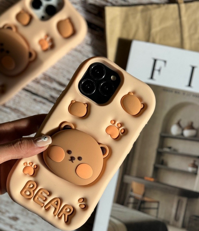 قاب فانتزی خرسی سیلیکونی پاپ سوکتی گوشی سامسونگ آیفون شیائومی