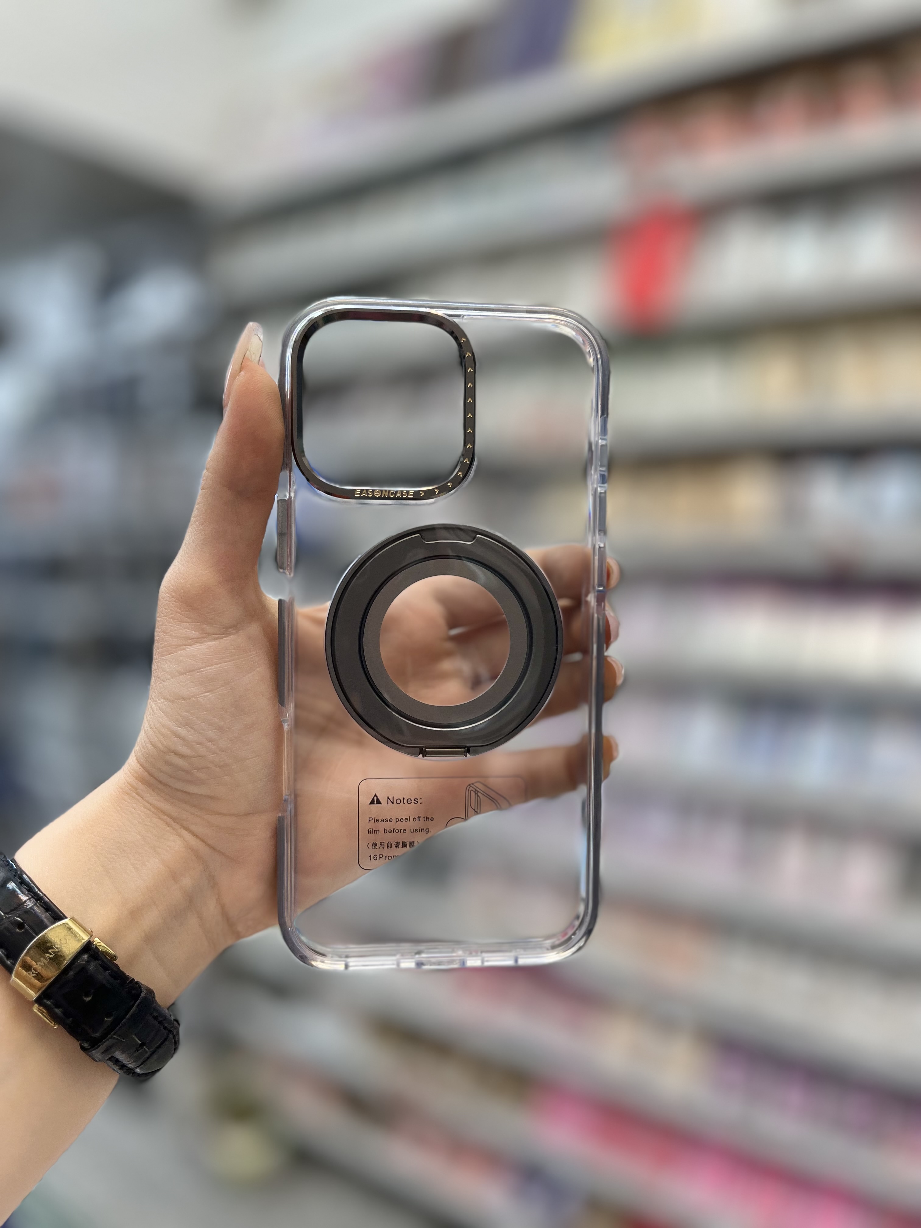 ویژگی استند شو (پایه نگهدارنده) در این قاب به شما امکان میدهد گوشی را به صورت افقی روی سطح قرار دهید و به راحتی ویدئو تماشا کنید، جلسات آنلاین داشته باشید یا کارهای روزمرهتان را بدون نیاز به گرفتن گوشی انجام دهید.