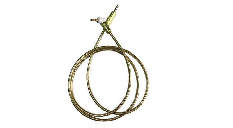 کابل AUX با روکش فلزی یک کابل انتقال صدای ۳٫۵ میلیمتری قدرتمند است که حدود ۱ متر طول دارد این کابل فلزی صدا دارای دو سر با جک ۳٫۵ میلیمتری میباشد که یکی از این جک سر کج و دارای زاویه ۹۰ درجه میباشد.از آنجاکه کابلی با این طول بهاحتمال زیاد در خود گره میخورد بهصورت فلزی ساختهشده است تا هم جمع و جور باشد، هم پیچیدن آن دشوار نباشد. علاوه بر این باعث میشود برای فاصلههای کمتر هم مناسب باشد و فضای زیادی را اشغال نکند. در هر سمت از این کابل صدا یک کانکتور ۳٫۵ میلیمتری قرارگرفته تا صدا را انتقال دهد. این کانکتورها قادر هستند به گوشی موبایل، تبلت یا بلندگو، اسپیکر یا دیگر دستگاههای پخشکنندهی صدای مجهز به درگاه ۳٫۵ میلیمتری وصل شوند. روکش آنها فلز است که باعث کاهش خوردگی و حفظ کیفیت صدا میشود.